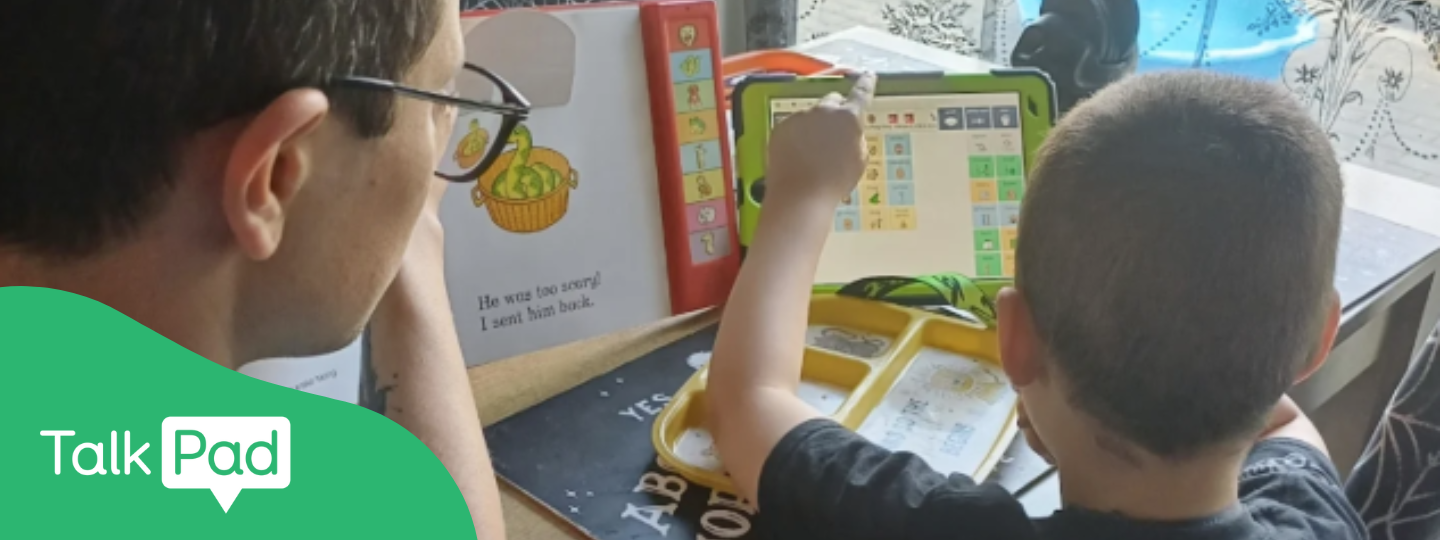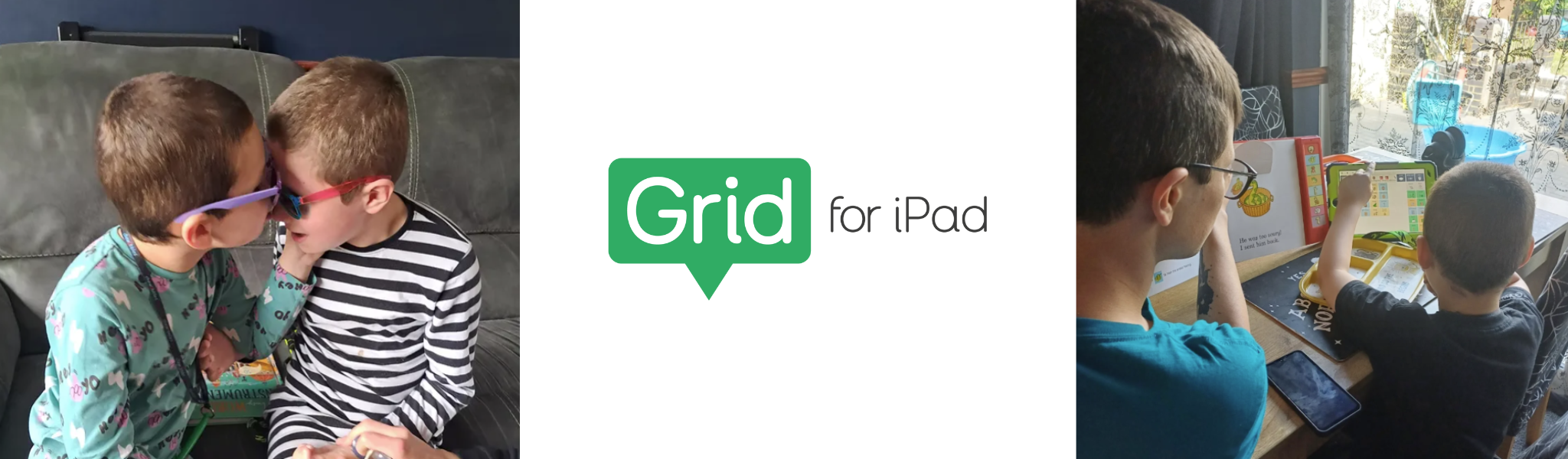 Sullivan wurde schon sehr früh mit Unterstützter Kommunikation konfrontiert, einfach dadurch, dass er Tristans Kommunikationsmittel um sich herum hatte. Wir haben ihm ein ähnliches Buch gemacht, als er zwei Jahre alt war. Letztes Jahr haben wir im Rahmen der Aktion zum AAC Awareness Month ein iPad gekauft und Grid for iPad für ihn heruntergeladen - denn er war immer daran interessiert, das Talk Pad von Tristan zu benutzen! Es hat uns umgehauen, wie schnell er damit zurechtgekommen ist.