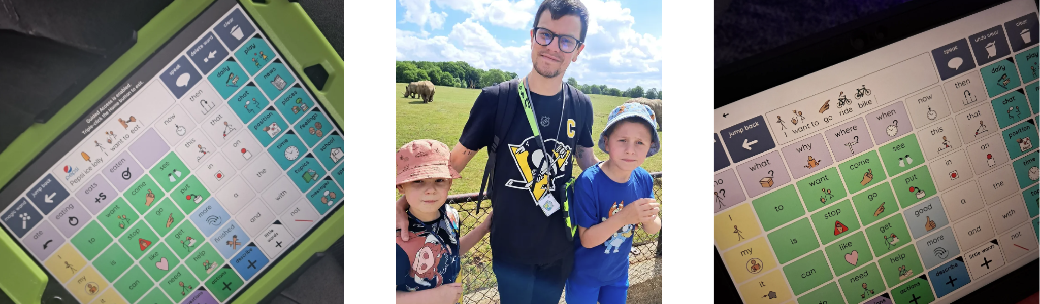 Tristan ist acht und Sullivan sechs Jahre alt, beide haben Autismus. Wir leben in Hertfordshire (Großbritannien) und die Jungs besuchen die gleiche Sonderschule. Sie gehen gerne zum Spielen, in den Zoo und in Freizeitparks - vor allem in die Peppa Pig World! Zu Hause versuchen wir, die Dinge lustig und aktiv zu gestalten, wenn sie nicht in der Schule sind. Eine ihrer Lieblingsbeschäftigungen ist es, sich in der Stadt einen Milchshake zu holen. Tristan benutzt sogar sein Gerät, um an der Theke zu bestellen - mit ein wenig Unterstützung von uns.