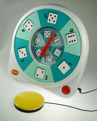 Diese elektronische Zeigeuhr wird entweder über den eingebauten Taster oder mit einer handelsüblichen Taste/Sensor (3,5mm-Klinkenstecker) ausgelöst. Der mitgelieferte Würfelscheibensatz ermöglicht auch Schwerstbehinderten die Teilnahme an bekannten Würfelspielen.