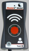 Der Ruf kann direkt an einer Taste des Senders abgesetzt werden. Zudem können individuell erforderliche Sensoren oder Taster (nicht im Lieferumfang enthalten) mittels 3,5 mm Klinkenanschluss mit dem Sender des Systems verbunden werden. Ab Hardwareversion 1.07 verfügt der AssistX Mobil Sender zudem über einen integrierten Infrarot-Empfänger (IR), der zusätzlich zum Klinkenanschluss oder der Taste genutzt werden kann. So können z.B. NutzerInnen eines Grid Pad mit Augensteuerung direkt über das IR-Signal ihres Gerätes das Rufsystem auslösen und auf diese Weise das Pflegepersonal benachrichtigen.