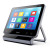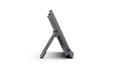 Das Gerät lässt sich an einer Rollstuhlhalterung befestigen, der integrierte Aufstellfuß ermöglicht eine entspannte Bedienung z.B. auf dem Tisch.