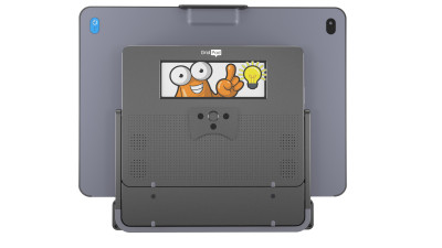 Auf der Rückseite des Grid Pads 16 ist ein sehr großes zweites Display mit 6,5‘‘ integriert, auf dem die Mitteilungen, die die Nutzer:innen verfassen, mitgelesen werden können. Die Darstellung ist mehrfarbig, so dass neben Schrift auch Symbole oder Symojis dargestellt werden können. Der weite Betrachtungswinkel sichert gute Lesbarkeit auch von der Seite.