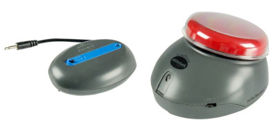 Der Jelly Beamer ist ein kabelloser Taster, der die Bedienung von Geräten in bis zu 10 m Entfernung ermöglicht. Das Set besteht aus einer Taste mit eingebautem Sender (Ø 6,3 cm) und einem einfachen Empfänger ohne SLAT-Funktionen. Dieser wird an die Tastenanschlussbuchse des zu steuernden Geräts angeschlossen.
