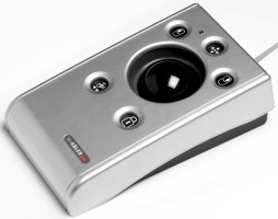 Der n-abler Pro Trackball hat eine große, schwere Kugel, die ein Verschieben des Mauszeigers beim Auslösen verhindern kann. Fünf kontrastreiche Funktionstasten für Mausfunktionen wie „Klicken und Ziehen” oder Doppelklicksind um die Kugel herum angelegt. Zudem lassen sich zwei externe Tasten anschließen.